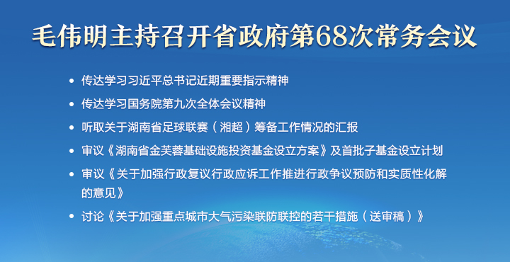 • 毛偉明主持省政府第68次常務會議 研究設立金芙蓉基礎設施投資基金、大氣污染聯防聯...